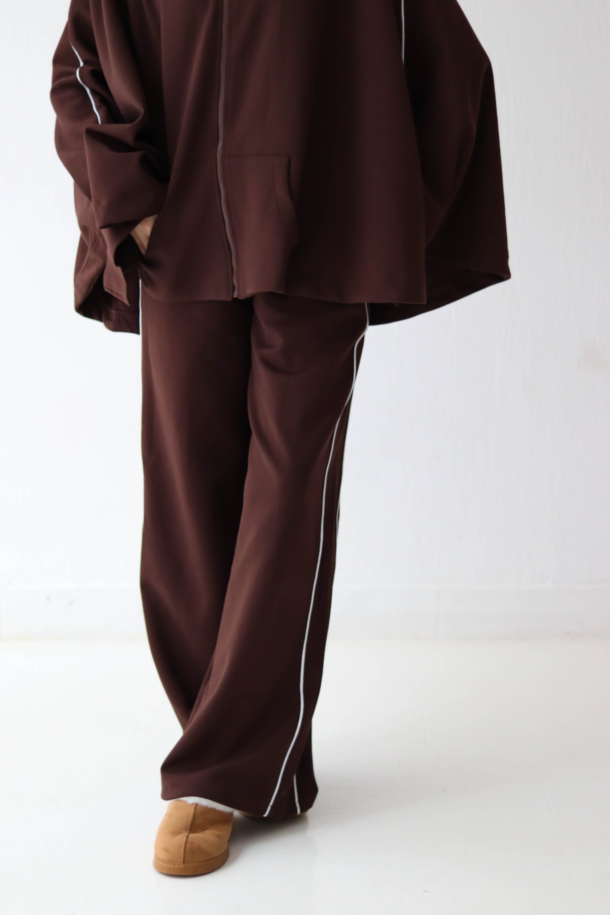 This set features a flowy oversized top and wide-leg trousers with clean side lines—giving you a refined, relaxed look you can wear anywhere.